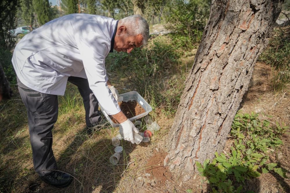 Yaklaşık bin hektar alanda çam kese böceği ile mücadele ettiklerini söyleyen Bursa Orman Bölge Müdürü Erdal Şahan, "Ormanlarda çeşitli nedenlerle ortaya çıkan böcek zararlıları ile Orman Genel Müdürlüğü'nün sürdürülebilir orman yönetimi anlayışı doğrultusunda doğayla uyumlu, biyolojik çeşitliliğin korunmasının ön plana alındığı çalışmalar yürütüyoruz. Böcek zararlısına karşı yürütülen çalışmalarda öncelikle zararlının popülasyonunu azaltmayı ve ilerleyen süreçte bozulan doğal dengeyi yeniden kurmayı hedefliyoruz. Orman Bölge Müdürlüğümüzde çam ormanlarının gelişimini engelleyen çam kese böceği zararlısına karşı da bu anlayış doğrultusunda çalışmalar yürütmekteyiz. Doğadaki besin zinciri içinde zararlının larvasından beslenen böceklerin ormanlık alanlarda oluşturduğumuz adacık ve tel kafeslerde yırtıcı sayılarını artırmak, keseleri toplayarak imha etmek ve yırtıcı böcekleri laboratuvar ortamında üretmek gibi çeşitli yöntemler kullanıyoruz. Biyolojik mücadele çalışmaları, uzun sürede sonuç alınabilen, zaman ve sabır isteyen çalışmalardır. Biyolojik çeşitliliğe zarar vermeden etkili sonuç alabilmek için biyolojik, biyoteknik ve mekanik yöntemlerin tamamını zararlının yoğunluğuna göre bir arada kullanabiliyoruz. Bursa Orman Bölge Müdürlüğü'nde yaklaşık bin hektar alanda çam kese böceği ile mücadele ediyoruz. 2006 yılından bu yana çam kese böceği zararlısına karşı 440 bin 335 adet terminatör böcek, Bölge Müdürlüğümüz laboratuvarlarında üretilerek zararlının tespit edildiği ormanlara salım yapıldı. 2025 yılında bugüne 24 bin adet terminatör böcek üretilerek zararlının görüldüğü çam ormanlarına bırakıldı. Nisan ayı sonuna kadar 6 bin adet daha salım yapmayı planlıyoruz. 2025 yılında toplam 30 bin adet salım yapmayı hedefliyoruz. 2025 yılında bir önceki dönemlere göre artış olmadığını gözlemledik. Bir arada yürüttüğümüz mücadele yöntemlerinin fayda sağladığını söyleyebiliriz" şeklinde konuştu.