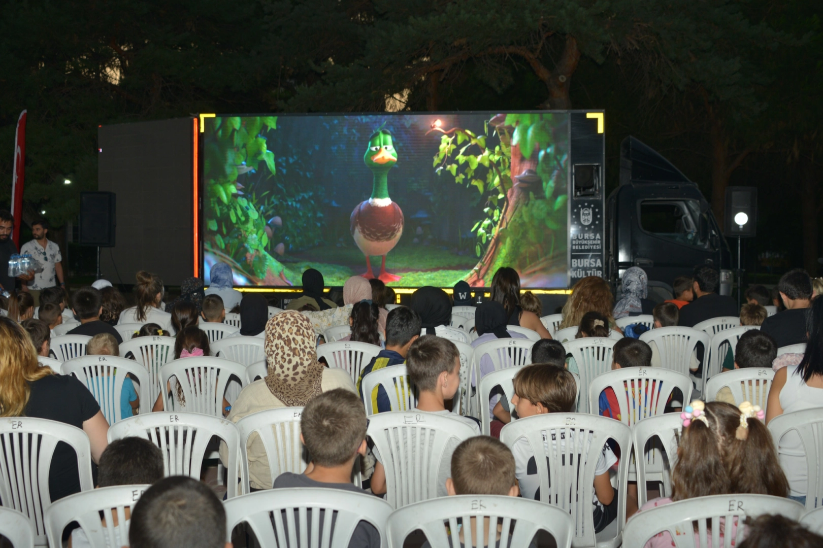 Merinos Park’ındaki etkinlik öncesinde dağıtılan patlamış mısır ve içecekleri afiyetle tüketen çocuklar, ‘Ördeklerin Göçü’ adlı çizgi filmi büyük bir keyifle izledi. Özel gereksinimli bireylerin de katıldığı etkinlikte, 7’en 70’e herkes eğlenceli bir akşam geçirdi. Açık havada çizgi film izleyerek çok mutlu olduklarını dile getiren çocuklar, Başkan Mustafa Bozbey’e ve Büyükşehir Belediyesi’ne teşekkür etti.