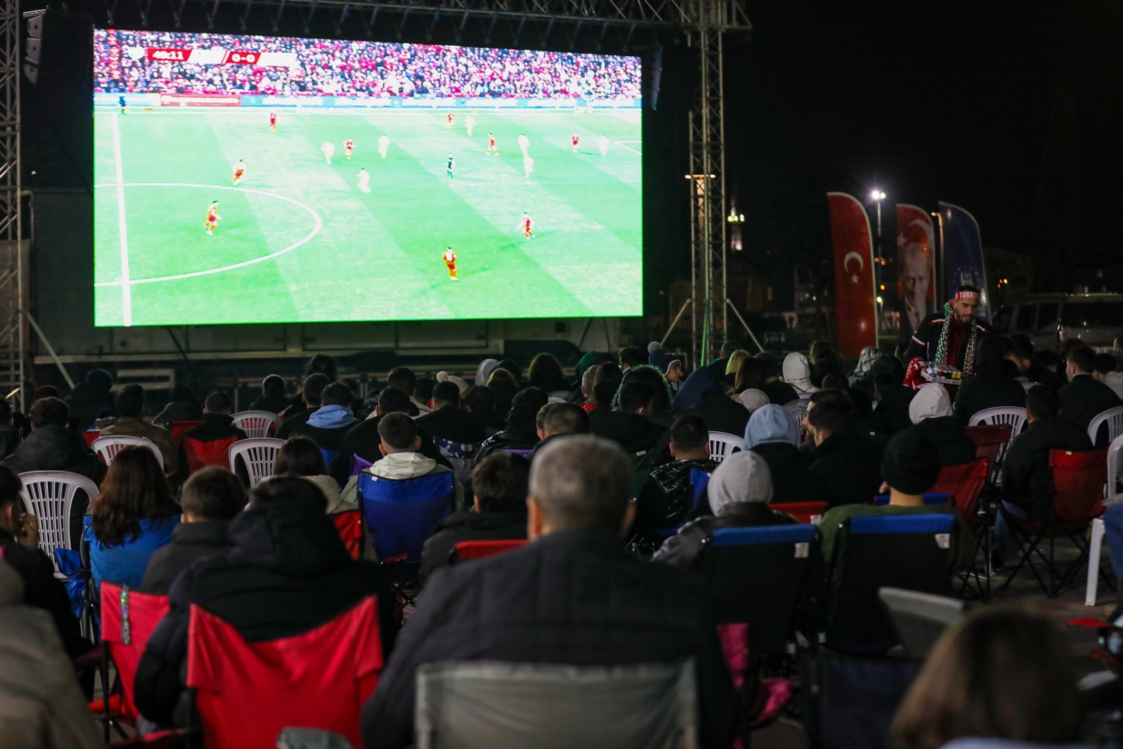 Bursa Büyükşehir Belediyesi, A Milli Futbol Takımı’nın Dünya Kupası Play-Off Yarı Final eşleşmesinde Romanya ile oynadığı karşılaşmayı Hüdavendigar Kent Parkı ve Görükle Gençlik Merkezi’nde kurduğu dev ekranlarda Bursalılarla buluşturdu. Yüzlerce kişi, ellerinde Türk bayraklarıyla maçı büyük bir coşkuyla takip etti.