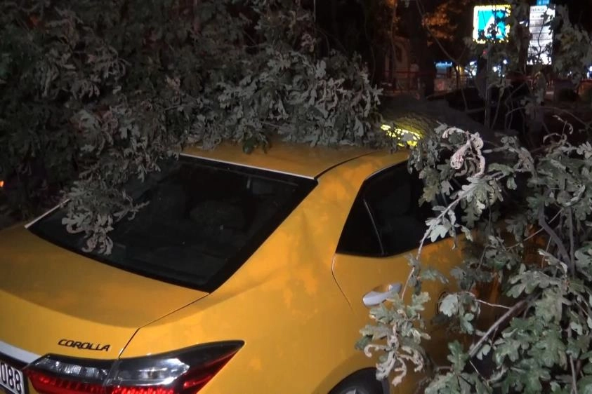 Bursa’da bir taksi durağının yanında bulunan 193 yaşındaki anıt ağaç, iki ticari taksinin üzerine devrildi. Devrilen ağaç yanındaki elektrik tellerine dolanırken şans eseri çevrede kimsenin olmamasıyla faciadan dönüldü.