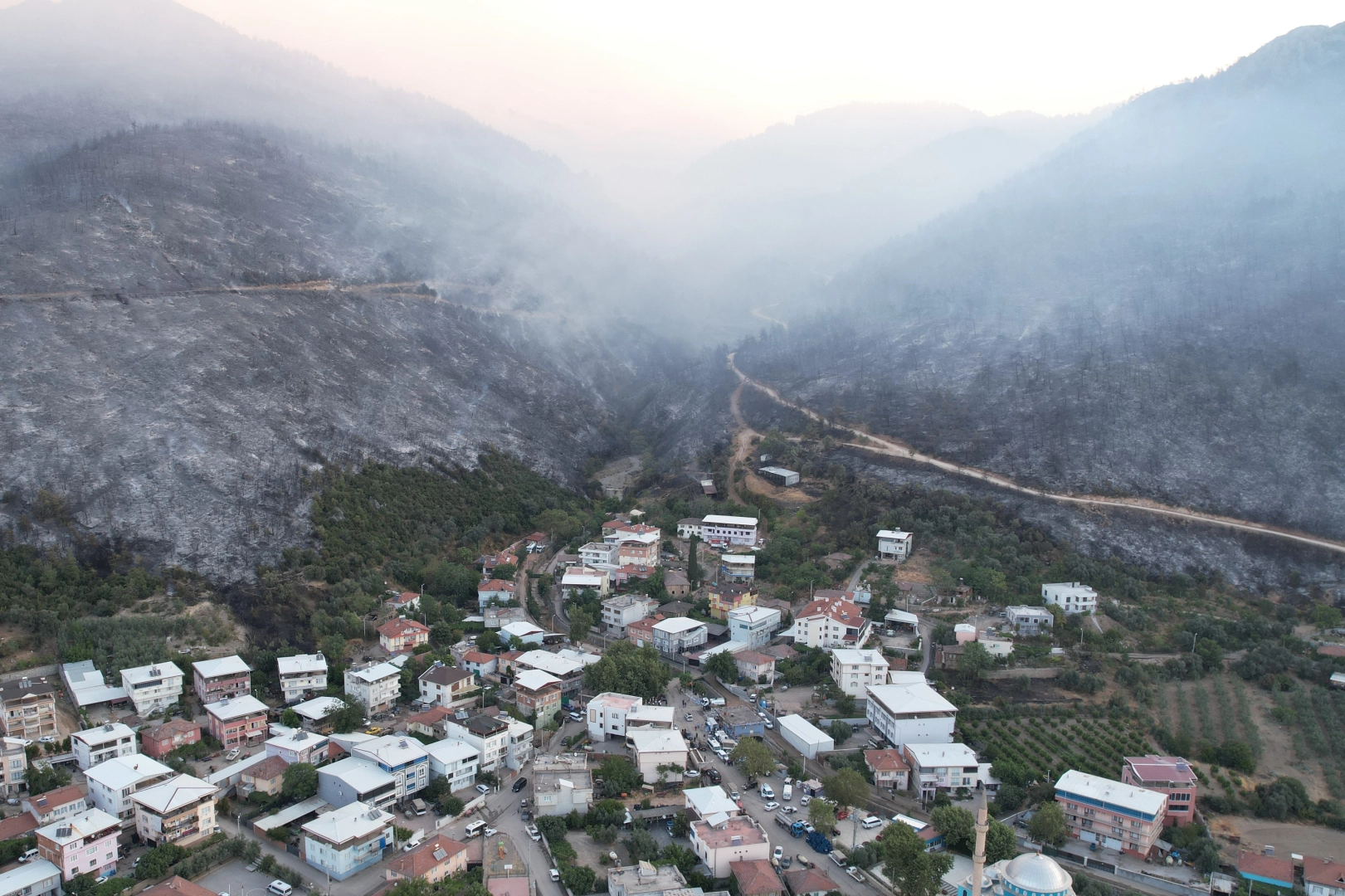 Bursa'da 100 hektardan fazla alanı küle çeviren 3 köyde 485 hanedeki 1765 kişinin tahliye edilmesine sebep olan yangın ekiplerin gece boyunca canlı başla mücadelesi sonrası büyük ölçüde söndürüldü. İğdir ve Narlıdere köylerinde İHA ekiplerinin kaydettiği dron görüntüleri çamla bezeli ormanlık alanın griye döndüğünü gösteriyor.