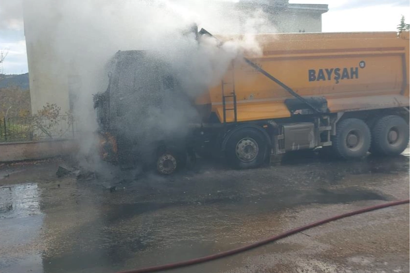 Olay, Bursa'nın Mustafakemalpaşa ilçesi Devecikonak Mahallesi’nde meydana geldi. Edinilen bilgiye göre, Taş Mektep yakınlarında hafriyat kamyonundan dumanlar çıktığı fark eden sürücü, araçtan inip canını kurtardı. Biranda alev topuna dönen kamyon, Orman İşletme Müdürlüğü’ne bağlı ekipler tarafından söndürüldü.
