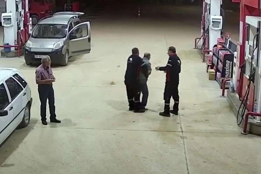 Nefes almakta zorlanan vatandaşın yardımına istasyon çalışanları koştu. İlk doğru müdahaleyi yapan istasyon çalışanları Heimlich manevrası ile vatandaşın hayatını kurtardı. İlk müdahale benzin istasyonunun güvenlik kameralarına saniye saniye yansıdı.
