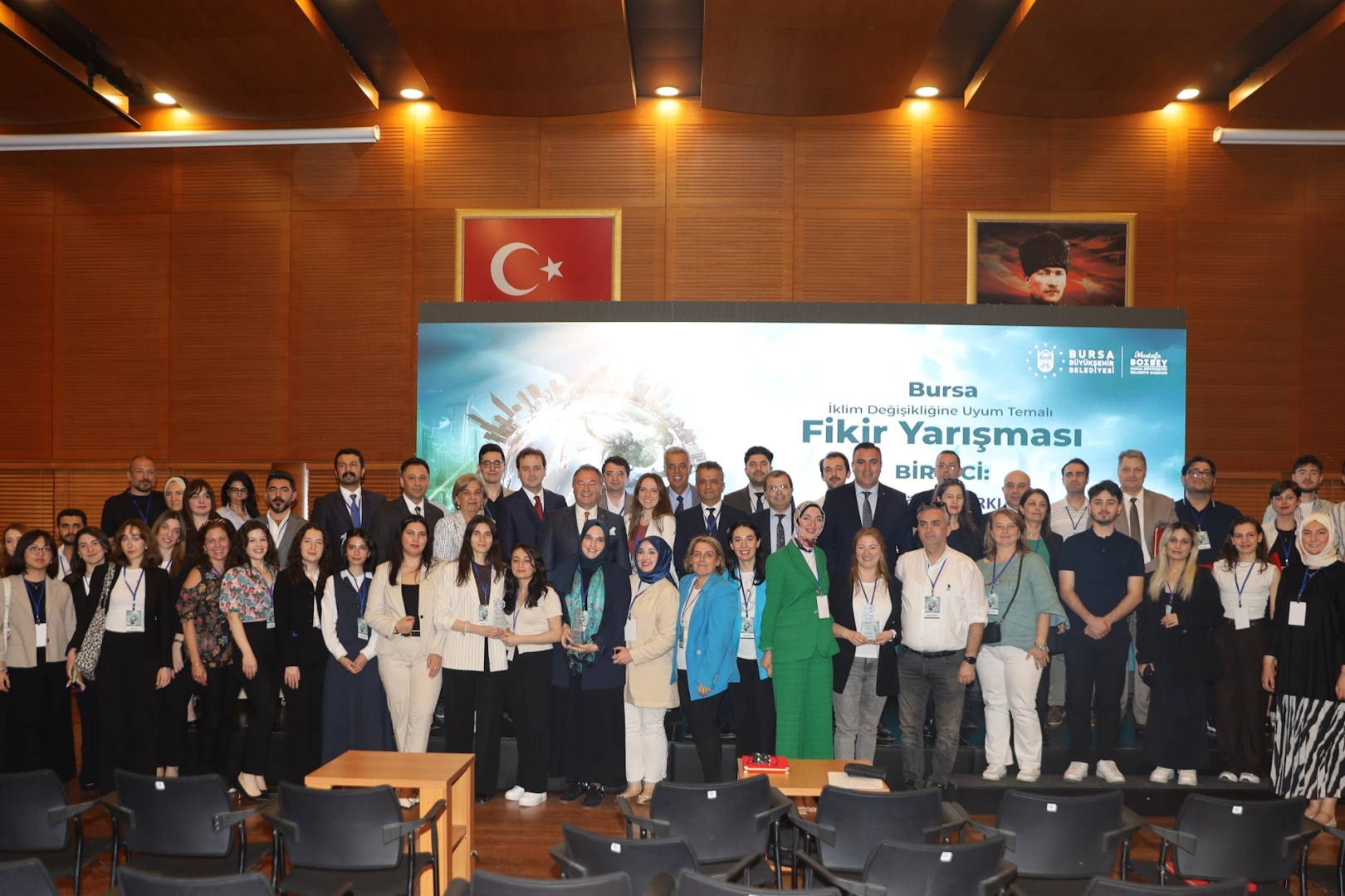 Strateji Geliştirme Dairesi Başkanı Derya Özgök, iklim değişikliğine uyum sağlamak amacıyla hazırlanan yarışmaya gençlerin büyük ilgi gösterdiğini belirterek, tüm proje sahiplerine teşekkür etti. Jüri üyeleri tarafından gün boyu sürdürülen titiz değerlendirmeler sonucunda, kazanan projeler belirlendi. Yarışmada, Berrenur Yalçın ve Sidal Yılmaz’ın hazırladığı ‘Yağmur Çarkı’ projesi birinci oldu. Cemre Koçlu, Ebru Kamacı Karahan, Sinem Tapkı, Şüheda Ceylan ve Seher Tuğçe Özdemir’in hazırladığı ‘Yapay zeka ile güçlendirilmiş mahalle temelli su yönetimi: Yağmur bahçeleri ve geçirgen sokaklarla iklim dirençli kent modeli’ projesi ikinci, Hakan Özkaynak ve Burcu Özkaynak’ın hazırladığı ‘Mikroplastik giderimi için sentetik ferrofluidslerin analizi otomatik prototip geliştirilmesi’ projesi üçüncü oldu. Final programına Bursa Büyükşehir Belediye Başkanı Mustafa Bozbey’i temsilen katılan Büyükşehir Belediyesi Başkanvekili Mehmet Aydın Saldız, başta tarım olmak üzere iklim değişikliğinin etkilerini her alanda yaşadıklarını söyledi. Geleceği ve geleceğin kentlerini planlarken iklimi göz önünde bulundurmak gerektiğini belirten Saldız, bu doğrultuda ‘İklim Değişikliğine Uyum’ temalı fikir yarışması düzenlendiğini ifade etti. Yarışmayla birlikte kentin geleceğini birlikte yazmayı amaçladıklarını anlatan Saldız, “Tüm proje sahiplerini tebrik ediyorum. Belediyemiz bünyesindeki 9 daire başkanlığı bu sürecin bir parçası oldu. Birlikte çalıştık, birlikte yön verdik. Katılımcı, şeffaf yönetim anlayışımızın en güzel örneklerinden biri oldu. Jüri üyelerimize ve tüm proje sahiplerine teşekkür ediyorum. Ortaya konan fikirler göz ardı edilmeyecek. Bazıları yol haritası olacak, bazıları bütüncül stratejilere katkı sunacak ancak hiçbir fikir, bir köşede kalmayacak. Bizler ortak akla inanıyoruz, katılımcılığa inanıyoruz, bilime inanıyoruz. Bugün burada kazanan sadece projeler değil, kazanan Bursa oldu” dedi. Konuşmaların ardından Büyükşehir Belediyesi Başkanvekili Mehmet Aydın Saldız tarafından jüri üyelerine, genel sekreter yardımcıları tarafından finale kalan 20 proje sahibine plaket takdim edildi. Başkanvekili Saldız, yarışma sonucunda birinci olan ekibe 100.000 TL, ikinci olan ekibe 60.000 TL, üçüncü olan ekibe ise 40.000 TL’lik hediye çekini takdim etti.