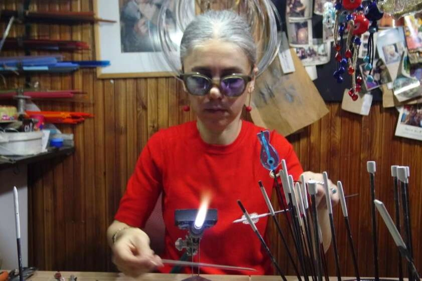Bursa Balibey Han'daki atölyesinde çalışmalar yapan Ümmihan Ağırman, üniversite döneminde ilgi duymaya başladığı cam sanatını 15 yıldır icra ediyor. Ağırman, "Çocukken sobada eritiyorduk, şimdi gelir kapımız oldu" dedi.