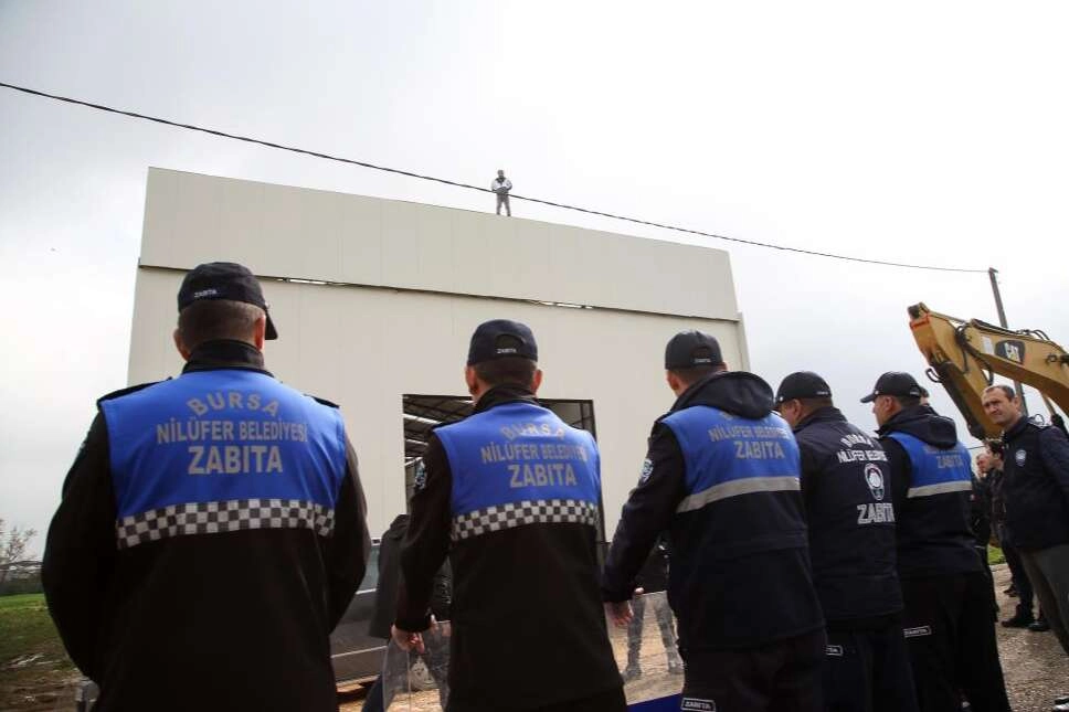 Nilüfer Belediyesi yıkım ekipleri, kaçak yapıyı yıkmak için gittikleri bölgede işçilerin engeliyle karşılaştı. İnşaatın çatısına çıkan ve saatlerce çatıdan inmeyen bir işçi, ekiplere güç anlar yaşattı. Nilüfer Belediyesi’nin bir gün içinde yıkmayı planladığı 5 kaçak yapıdan 2’si yıkılırken, 3’ü içinse yürütmeyi durdurma kararı alınınca ekipler geri döndü.