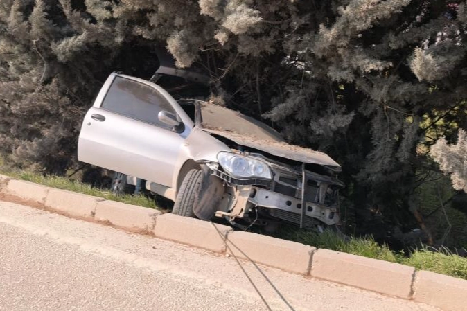 Bursa'da kontrolden çıkan otomobil ağaçlık alana uçtu