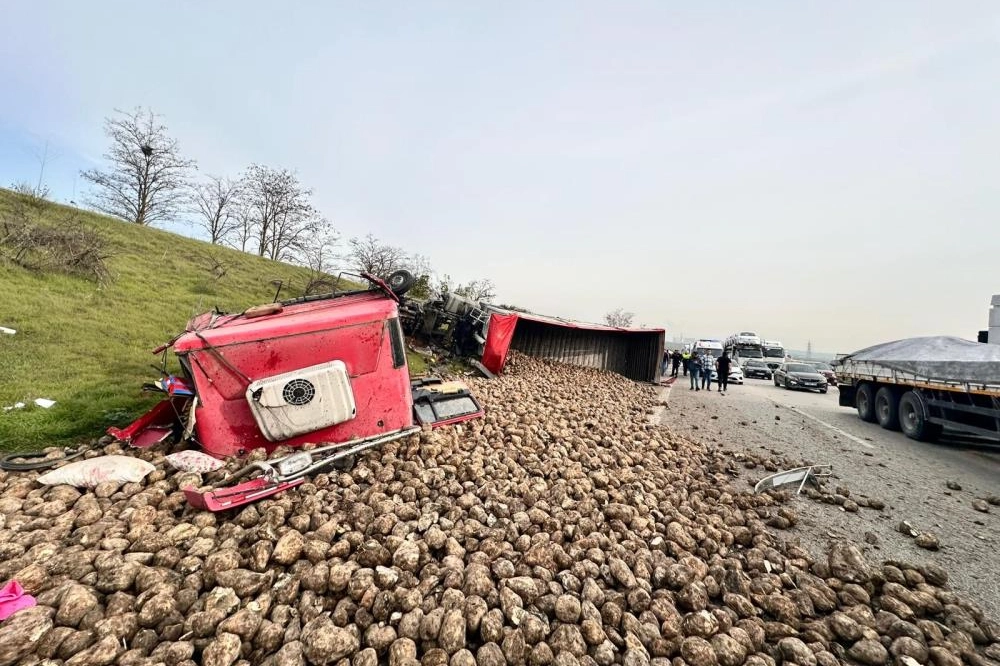 Kaza, saat 11.30 sıralarında İstanbul-İzmir Otobanı, Hal Kavşağı mevkiinde meydana geldi. Edinilen bilgiye göre, şeker pancarı yüklü TIR, sürücüsünün kontrolünden çıkıp önce hafif ticari araca, sonra kamyonete çarptı. Savrulan araçlar refüje girerken, TIR yola devrildi. Kazayı gören çevredekiler yaralıların yardımına koşarken, 112 ekiplerine bilgi verildi. İhbar üzerine olay yerine çok sayıda polis ve sağlık ekibi sevk edildi. Sağlık ekiplerince ilk müdahalesi olay yerinde yapılan 1'i ağır 5 yaralı ambulansla bölgedeki hastanelere sevk edildi. Şeker pancarlarının yola savrulması nedeniyle, trafik ekipleri bölgede başka kazaların yaşanmaması için tedbir aldı.
