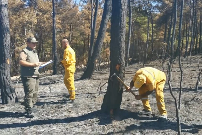 Havadan dron ile yapılan çalışmaların yanı sıra, karadan ise orman ekiplerinin hummalı çalışmaları sürüyor. Ekipler, ağaçların gövdelerine bakarak yaşama ihtimali veya kesilme durumunu netleştiriyor. Kesilecek olan ağaçlara numara verilirken, temizliğin ardından boşalan alana kesilen ağacın iki katından fazla fidan dikilmesi hedefleniyor.