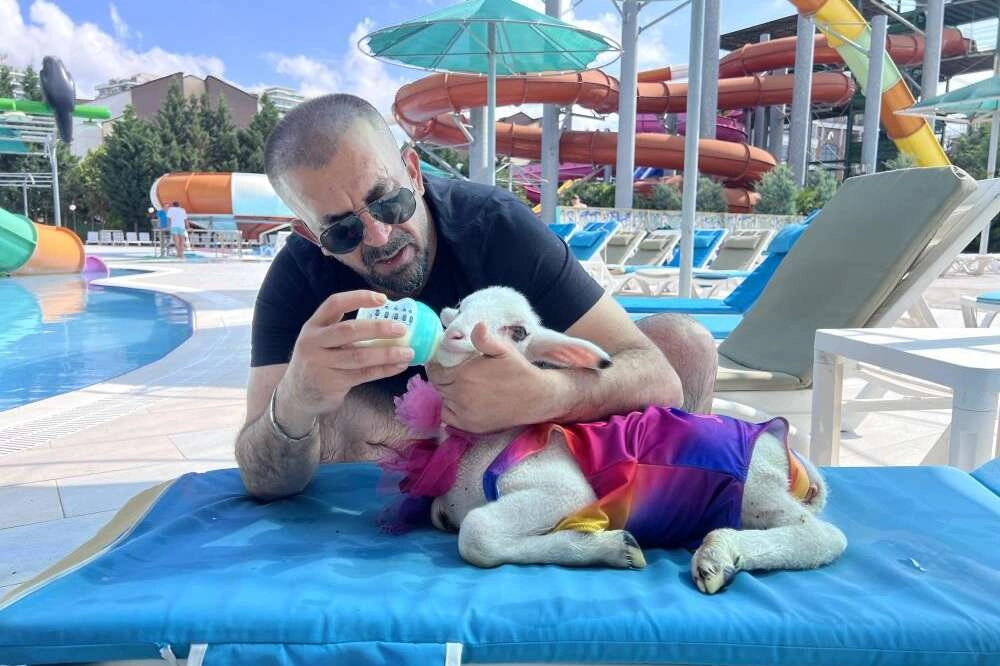Bursa’da yaklaşan Kurban Bayramı öncesi tatil yapmaya karar veren Ali Koçak “Suzan” ismini verdiği kuzusu ile bir eğlence merkezine gitti.