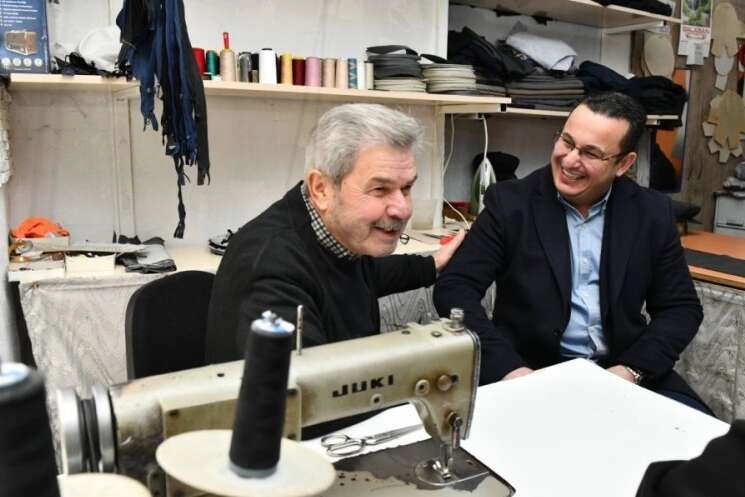 Mustafakemalpaşa Belediye Başkanı Mehmet Kanar, ilçede 53 yıldır meşhur Bursa şapkası üreten mesleğin son temsilcisi Hüseyin Doğualp'i işyerinde ziyaret etti.