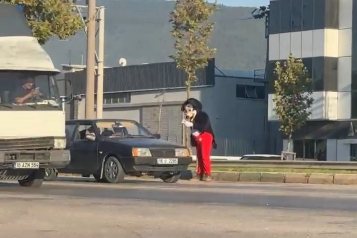 Bursa'nın Kestel ilçesinde, şehirlerarası yolda Miki Fare kostümü ile peçete satan kişi, sürücülerin ilgi odağı oldu. Kostüm ile sürücülere selam verip peçete satmak için araçlara yaklaşan kişi, herkesin yüzünü güldürdü. Bazı sürücüler hayret dolu gözlerle ne olup bittiğini anlamaya çalışırken, kimileri ise hoşuna gittiği için korna çalarak selam verdi.