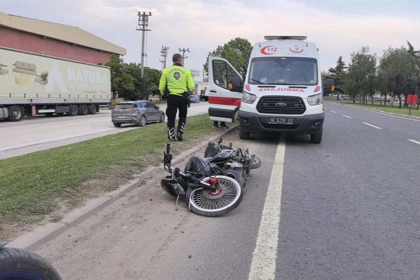 Olay, Bursa-Ankara karayolu üzeri İnegöl girişinde meydana geldi. Devriye görevi yapan Emniyet Müdürlüğü Trafik Büro Amirliği ekipleri, plakasını bezle kapatan motosikletin sürücüsüne 'dur' ihtarında bulundu. İhtara uymayan sürücü hızla kaçmaya başladı. Kontrolden çıkan motosiklet devrildi. Sürücü Eren Ş. (21) yaralandı. Yaralı, kaza yerine sevk edilen ambulansla İnegöl Devlet Hastanesine kaldırıldı. Yapılan incelemede sürücünün ehliyetinin olmadığı, motosikletin muayene ve sigortasının olmadığı ortaya çıktı. Sürücüye ehliyetsiz araç kullanmaktan 18 bin 706 TL, muayenesiz araç kullanmaktan 2 bin 168 TL, sigortasız araç kullanmaktan 993 TL, makas atmaktan 9 bin 267 TL cezai işlem uygulandı. Araç çekici yardımıyla otoparka çekildi.