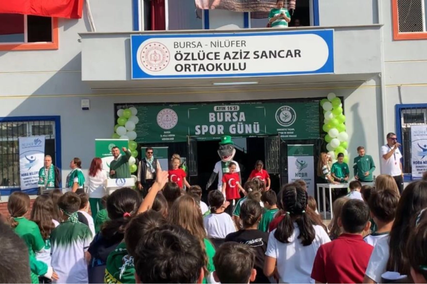 Spor Günü etkinliklerinin ilki Nilüfer Özlüce Aziz Sancar Ortaokulunda gerçekleştirildi. Etkinliğe Bursa İl Milli Eğitim Müdür Yardımcısı Abdulkadir Çınar, Bursaspor Kulübü Başkanı Enes Çelik, Teknik Direktör Tahsin Tam ve Bursasporlu futbolcular katıldı.