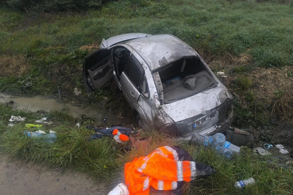 Bursa'da taklalar atan otomobil tarlaya uçtu: 3 yaralı