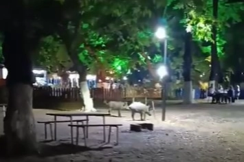 Bursa'nın Karacabey ilçesinde evlerin bulunduğu bölgeye inen yaban domuzları, parkta yiyecek aradı. Sıcak havadan bunalan vatandaşların da akşamları oturduğu piknik alanında cep telefonu kameralarına yansıyan görüntülerde, çocukların heyecanı ise dikkat çekti.