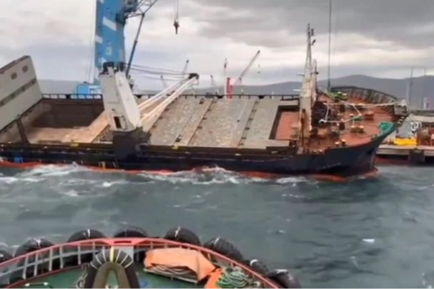 Gemlik ilçesinde şiddetli fırtınaya dayanamayarak yan yatan gemi, bugün ‘Kurtarma Uzmanları’ tarafından düzeltilerek kıyıya çekildi. Nefes kesen anlar anbean kameralara yansıdı.