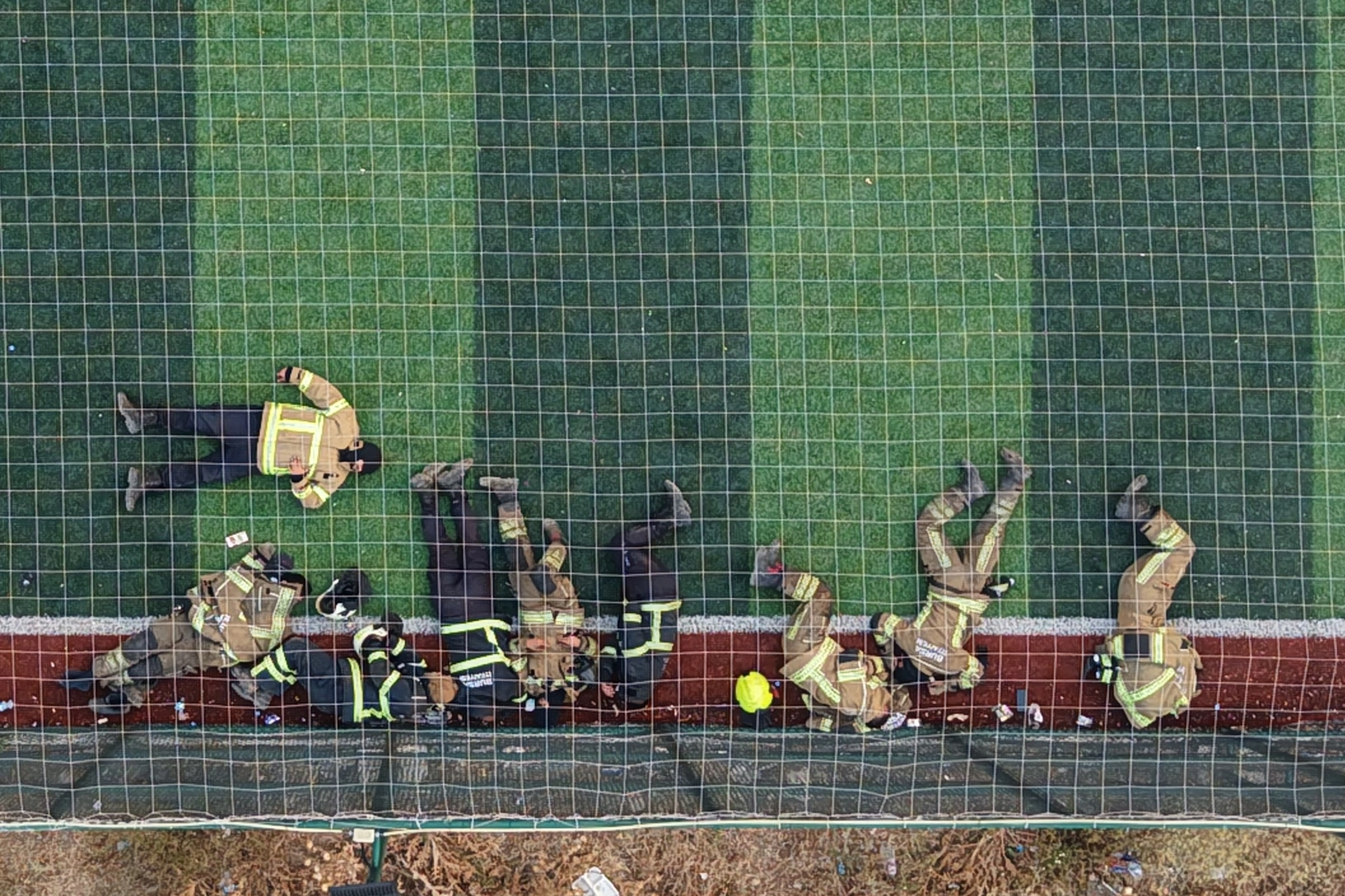 Halı sahada zor şartlarda birkaç saatliğine dinlenip yeniden göreve gitmek için hazırlanan itfaiye erleri dikkat çeken görüntüler oluşturdu. Gürsu Karahıdır ve İğdir ile Osmangazi Avdancık köylerindeki yangında büyük fedakarlık gösteren orman, itfaiye, jandarma ekipleri 12 saat boyunca bölgeden bir an olsun ayrılmadılar. Sabaha karşı alevler etkisini kaybedince ormandan çıkan itfaiye ekipleri amirlerinin izniyle istirahate çekildi. Ancak 2 saatliğine de olsa halı sahada güçlükle kıyafetleriyle uyuyabilen kahramanlar daha sonra soğutma çalışmasına gitmek için halı sahadan ayrıldı.
