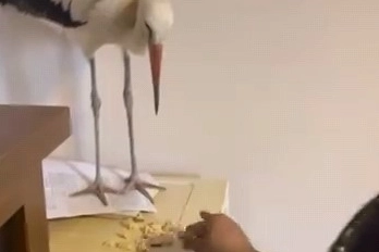 Uçamayan ve halsiz olduğu görülen leyleği elleriyle besleyen işletmeci, aynı zamanda hortumla su tutarak kuşu serinletti. Olay, İnegöl merkezdeki bir otoparkta meydana geldi. Sabah saatlerinde otoparka gelen işletme sahibi, alan içerisinde yürüyen yaralı bir leyleği fark etti. Hemen harekete geçen işletmeci, su ve yiyecek vererek leylekle yakından ilgilendi. Sıcaktan bunalan leylek, hortumla serinletildi.