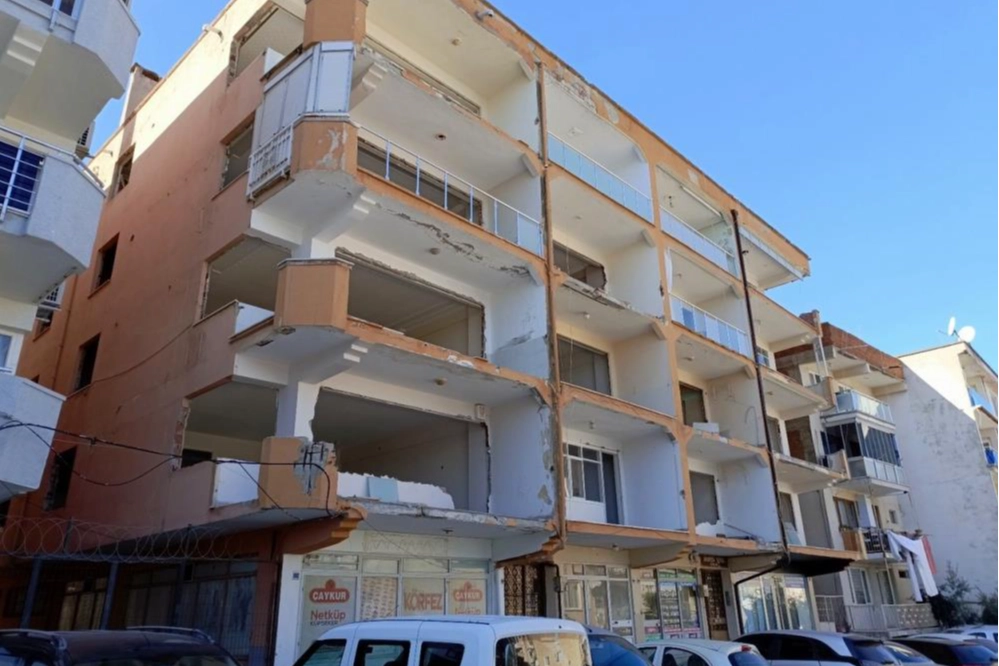 Tehlike saçan binadan parça parça betonların döküldüğü gözlemlenirken, bunun da can güvenliği için tehdit oluşturduğu ifade edildi.