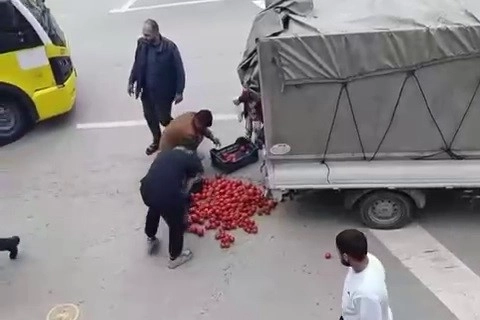 Olay, merkez Osmangazi ilçesi Emek Mahallesi'nde meydana geldi. Ani fren yapan hafif ticari otomobilin kasasından domatesler yola saçıldı. Durumu gören çevredeki yardımsever vatandaşlar, domatesleri el birliğiyle toplayarak satıcıya yardım etti. Yürek ısıtan anlar saniye saniye amatör kameraya yansıdı.