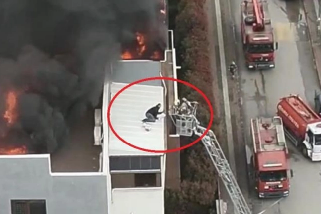 Öte yandan korku dolu anlar dron ile havadan görüntülendi. Görüntülerde çatı katını saran alevler ve gökyüzünü kaplayan yoğun duman dikkat çekti.