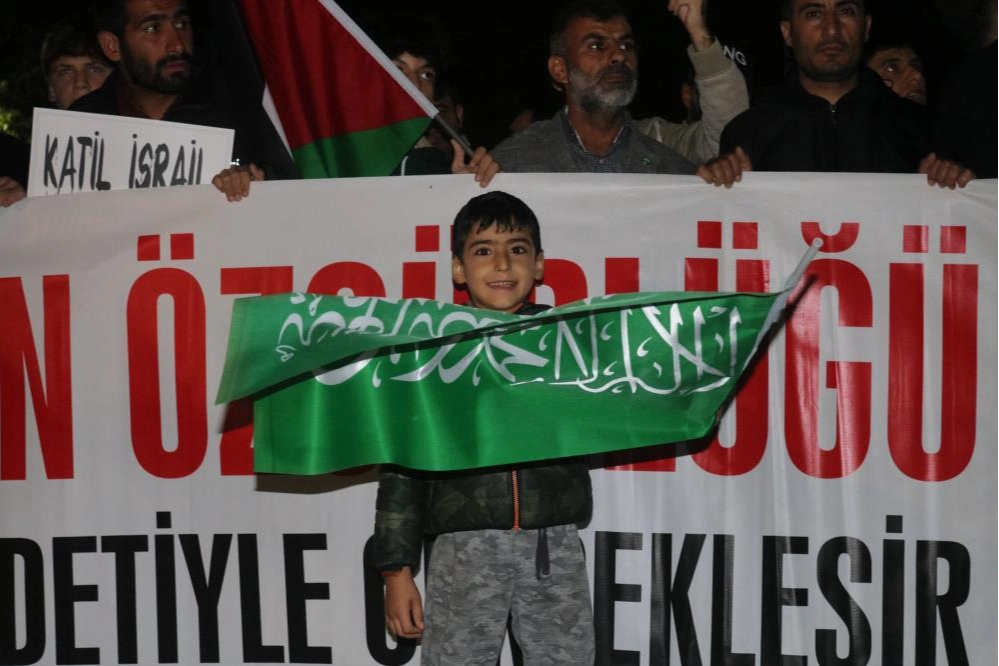 Hüda-Par’ın Filistin topraklarını bölünmez bir bütün olarak tanıdıklarını ifade eden Aymelek, “Filistin halkı, yalnızca kendi topraklarını savunmamaktadır, İslam ülkelerinin izzetini ve şerefini de savunmaktadır. Hal böyleyken Müslümanların resmi-sivil tüm unsurları ekonomik, askeri ve manevi olarak Müslüman kardeşlerinin yanında yer almalıdır. Filistinli Müslümanlar, işgale karşı direnişlerinde yalnız bırakılmamalıdır. Siyonist çete, işgal ettiği Filistin topraklarından defolmalıdır. İşgalci çeteyi, gelinen aşamada katliamcı ve işgalci uygulama ve politikalarından vazgeçmesi, Gazze’ye uyguladığı ambargoyu kaldırması ve yeni bir katliama girişmemesi konusunda uyarıyoruz. Hüda-Par olarak Filistin’i, başkenti Kudüs olan, doğusu ve batısıyla bölünmez bir bütün ve İslam’ın mukaddes toprakları olarak görüyoruz. İslam dünyasını, işgal altında olan ilk kıblesi için bütün ayrılıklarını bir kenara bırakmaya, Filistin’e sahip çıkmaya ve kardeşlerinin yanında durmaya davet ediyoruz” dedi.