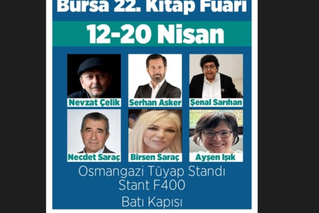 Osmangazi Belediyesi’nin standında kitapseverlerle buluşacak olan yazar ve şairlerin söyleşi ve imza programları belli oldu. 12 Nisan Cumartesi saat 13.00 Nevzat Çelik, 13 Nisan Pazar saat 15.00 Serhan Asker, 14 Nisan Pazartesi saat 17.00 Ayşen Işık, 16 Nisan Çarşamba saat 14.00 Şenal Sarıhan, 18 Nisan Cuma saat 15.00’ta ise Necdet Saraç ve Birsen Saraç, sevenleriyle Osmangazi Belediyesi’nin standında bir arada olacak.