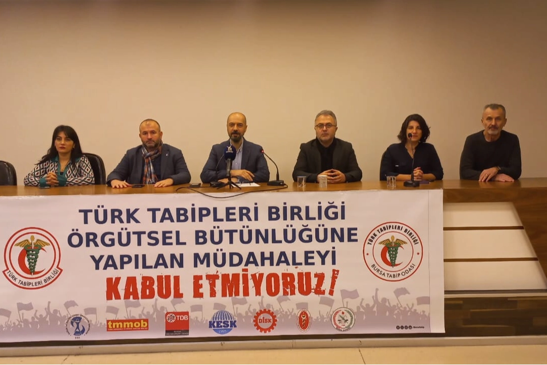 Meslek örgütleri adına Bursa Tabip Odası Başkanı Dr. Levent Tufan Kumaş bir basın açıklaması gerçekleştirdi. BTO Başkanı Dr. L. Tufan Kumaş, “TTB ve tabip odaları olarak, meslek örgütümüze yönelik baskıları kabul etmediğimizi, hekimlik değerleri, mesleki bağımsızlık ve halkın sağlık hakkı için mücadeleye devam edeceğimizi bir kez daha vurguluyoruz. Son 40 yıllık süreçte hakkında açılan davaların tamamından beraat etmiş olan TTB ve yöneticileri, bütün baskılara rağmen yaşanan bu süreçten de gücünü ve meşruiyetini artırarak çıkacaktır” ifadesini kullandı.