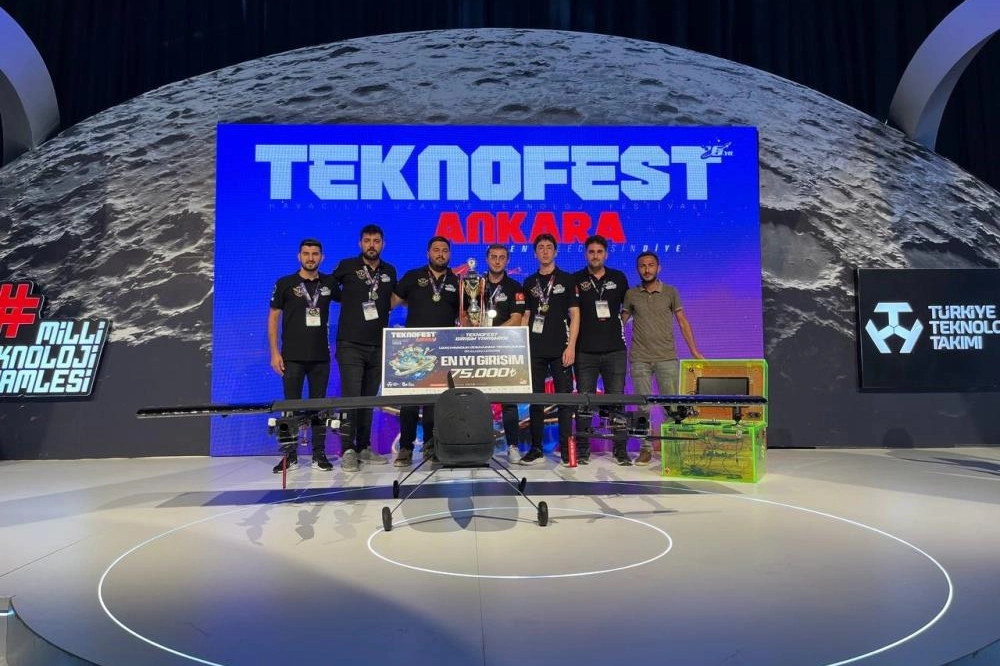 Robotlar ve Akıllı Sistemler alanında uzmanlaşan üniversite olarak Ar-Ge çalışmalarına ve girişimciliğe özellikle önem verdiklerini belirten BTÜ Rektörü Prof. Dr. Naci Çağlar, “Geliştirdikleri projelerle savunma sanayi ve üretim sektörüne yenilik getirecek değerli çalışmalara imza atan öğrencilerimizi kutluyor ve başarılarının artarak devam etmesini diliyoruz.” dedi. BTÜ VİSİON R&D Takımı Uzay, Havacılık ve Savunma Teknolojileri Ön Kuluçka Kategorisi’nde En İyi Girişim 1’incilik ödülünükazanırken BTÜ İNNOSENS Robot Teknolojileri Takımı da Haberleşme ve İletişim Teknolojileri Ön Kuluçka Kategorisi En İyi Girişim 1’incilik ödülünüalmaya hak kazandı. Dikey kalkabilen 5 motorlu İnsansız Hava Aracı ile 1’incilik ödülünü kazanan BTÜ VİSİON R&D Takımı, geliştirdiği hidrojen yakıtlı İHA ile yarışmanın gözdesi oldu. Proje hakkında bilgi veren Takım Kaptanı Makine Mühendisliği dördüncü sınıf öğrencisi İbrahim Dur, “Geliştirdiğimiz insansız hava aracımızın dikey iniş-kalkış yapmasını sağlayan 4 motoru elektrik, 5. ve ana motoru ise hidrojen enerji teknolojisi ile çalışmaktadır. Yapay zekâ destekli görüntü işleme teknolojisi ile tespit ettiği düşman unsurların koordinatlarını gerekli hesaplamalar sonucu belirleyen İHA’mız, bu verileri gövdesinde mühimmat olarak bulundurduğu 3 adet kamikaze drona iletmektedir. Ardından bu kamikaze dronlar hedefe yönelerek kilitlenmekte ve yüksek hassasiyet ile hedefi imha etmektedir. Projede yer kontrol istasyonu, gimbal elektronik kutu, kara kutu, haberleşme sisteminde anten takip cihazı ve görev ara yüzü sistemleri gibi pek çok sistem yerli olarak üretilmektedir.” ifadelerini kullandı. Kaynak izi sensörüyle endüstriyel kaynak işlemlerinde kalite ve verimlilik artacak Endüstriyel kaynak işlemlerine yönelik geliştirdikleri “Kaynak İzi Sensörü” projesi ile Haberleşme ve İletişim Teknolojileri Ön Kuluçka Kategorisinde En İyi Girişim 1’licilik ödülünü alan BTÜ İNNOSENS Robot Teknolojileri Takımı,endüstriyel kaynak işlemlerini optimize edecek yeni bir sistem geliştirdi. Proje ile ilgili detayları aktaran takım kaptanı Mekatronik Mühendisliği yüksek lisans öğrencisi Ali Yıldız, “Endüstride kaynak işleminin manuel yapılması üretim hızını düşürmekle birlikte kalifiye eleman ihtiyacını da ortaya çıkartmaktadır. Bu sebeple firmalar kaynak süreçlerini otonomlaştırmak, kaynak kalitesini arttırmak ve kalifiye eleman ihtiyacını ortadan kaldırmak için endüstriyel robotlara veya kaynak otomasyon robotlarına yönelmektedir. Mevcut robotik sistemler önceden planlanmış rotada hareket ederek kaynak işlemini yapmakta ancak kaynak esnasında oluşan yüksek ısı nedeniyle kaynak parçaları deforme olarak önceden planlanmış rotada sapmalar oluşabilmektedir. Yine kaynak parçalarının üretiminin hassas olmaması da robotların kaynak prosesini sağlıklı bir şekilde yapmasını engellemektedir. Bu sorunların giderilmesi için robotların kaynak ağzı boyunca yönlendirilmesini sağlayacak kaynak izi takip sensörlerine ihtiyaç olduğunu gözlemledik. Üzerinde çalıştığımız proje çerçevesinde da kaynak robotlarına bağlı kaynak torcunun kaynak ağzı boyunca gerçek zamanlı yönlendirilmesini sağlayacak ve parlak yüzeyli malzemelerin kaynağında çalışacak bir sensör geliştirdik.” şeklinde konuştu.