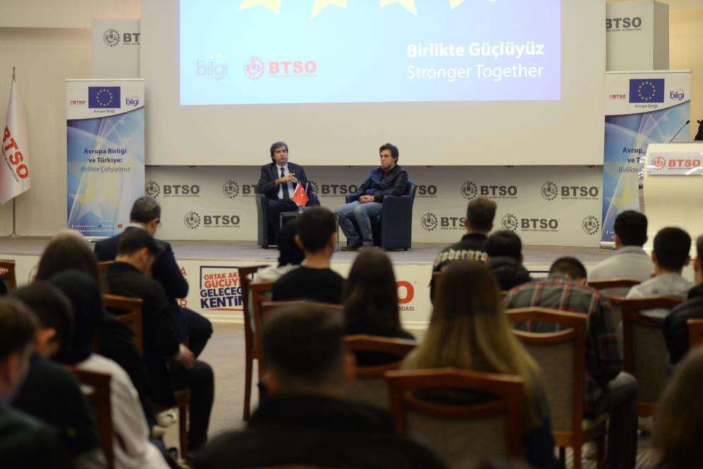 Avrupa Birliği (AB) Türkiye Delegasyonu’nun finansal desteği ile uygulanmakta olan, Türkiye’de AB Bilgi Merkezleri Ağı’nın desteklenmesi projesinde 1997 yılından bu yana Bursa Ticaret ve Sanayi Odası (BTSO) bünyesinde faaliyetlerini sürdüren AB Bilgi Merkezi’nin her yıl 9 Mayıs’ta ‘Barış, birlik ve beraberlik içinde yaşamak’ sloganıyla tüm dünyada kutlanan Avrupa Günü çerçevesinde gerçekleştirdiği ‘AB Eğitim ve Gençlik Programları Tanıtım Buluşması’ etkinliğine liseli öğrenciler, yoğun ilgi gösterdi.