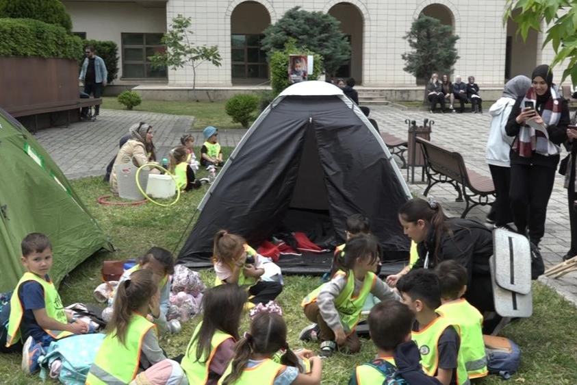 Bursa Teknik Üniversitesi öğrencilerinin, İsrail'in Filistin halkına yönelik aylardır düzenlediği saldırıları protesto etmek için kurdukları çadırlar, anaokulu öğrencileri tarafından ziyaret edildi.