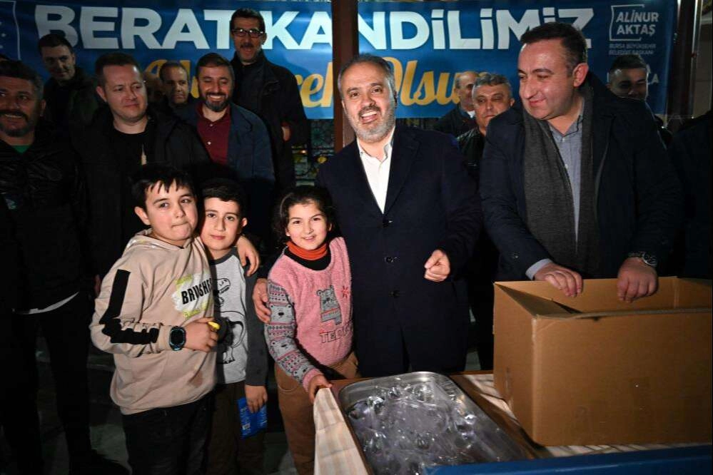 Ramazanın ayının habercisi olarak kabul edilen Berat Kandili, tüm yurtta ve İslam aleminde olduğu gibi Bursa’da da birlik, beraberlik, coşku ve heyecan içinde kutlandı. Bursalılar Ulu Cami başta olmak üzere selatin camilere akın ederken, Bursa Büyükşehir Belediye Başkanı Alinur Aktaş da Mihraplı Camii’nde vatandaşlarla buluştu. Vatandaşların kandilini tebrik eden Başkan Aktaş, cami çıkışı vatandaşlara helva ikram etti.