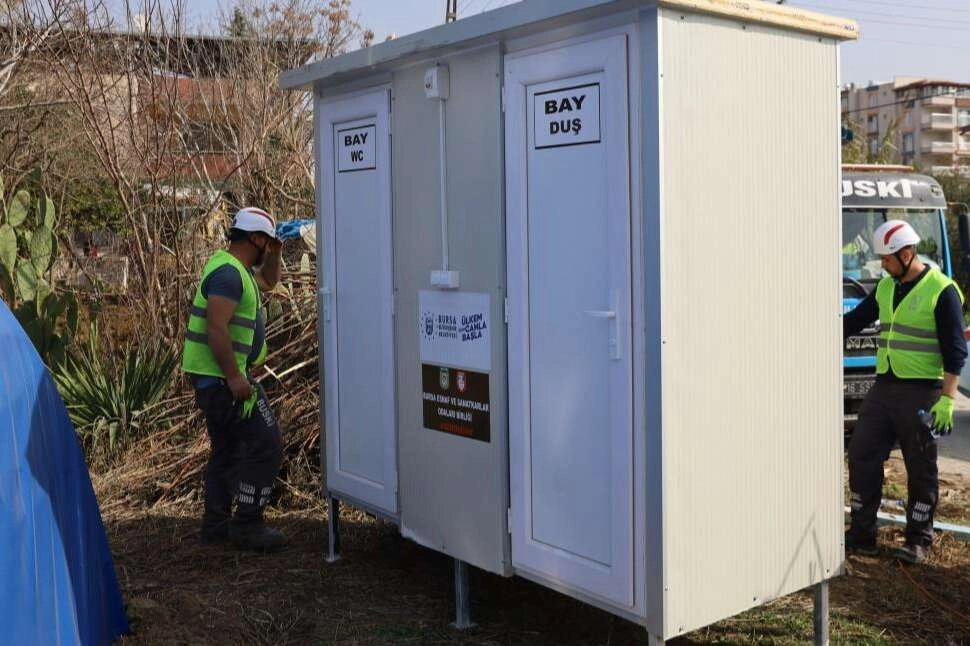 Depremde canlarını kurtardıktan sonra barınma ve ısınma sorununu da kendi imkanları ile çözdüklerini belirten afetzede Esat Bostancıoğlu, çok uğraşmalarına rağmen tuvalet ve duş sorununu bir türlü çözemediklerini söyledi. Bir arkadaşının bulundukları yerdeki seyyar tuvaletler üzerinde Bursa Büyükşehir Belediyesi logosu görmesi üzerine hemen Bursa Büyükşehir Belediyesi ile temasa geçtiklerini belirten Bostancıoğlu, "Sağ olsunlar aynı gün, hatta yarım saat-bir saat gibi kısa bir süre içerisinde bana dönüş yaptılar. Açıkçası bu kadar hızlı dönüş sağlayacaklarını umut etmiyorduk. Dün başvuru yaptık, bugün de sabah ekipler çalışmaya başladı. Herkese çok teşekkür ederim” dedi.