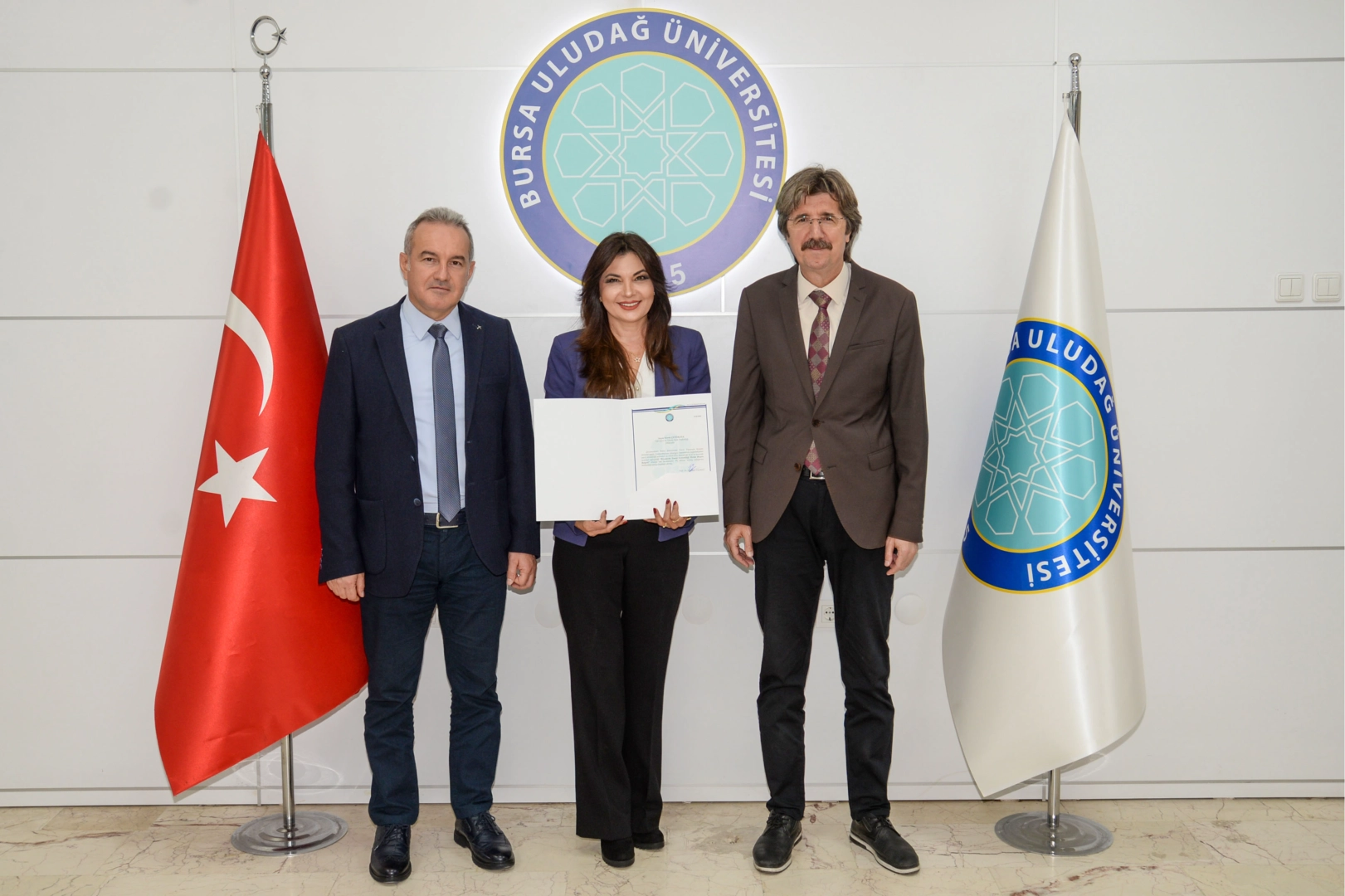 BUÜ Rektörü Prof. Dr. Ferudun Yılmaz ve Rektör Yardımcısı Prof. Dr. Cafer Çiftci, üniversitedeki birim temsilcilerine başarı belgelerini teslim etti.