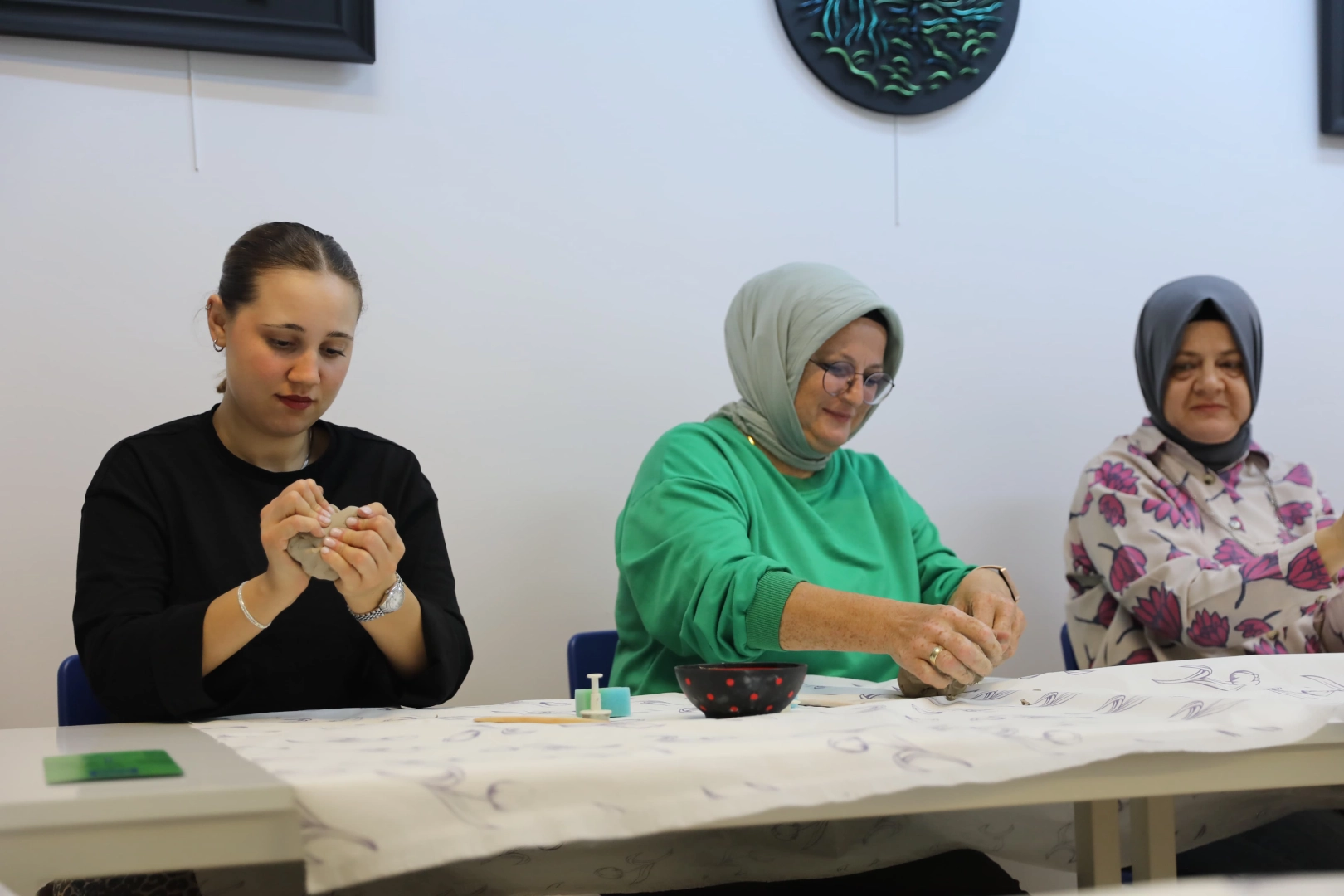 Hem el becerilerini geliştiren hem de sanat yoluyla kendilerini ifade etmenin keyfini yaşayan vatandaşlar, seramik çalışmaları sırasında birbirleriyle iletişim kurarak üretmenin mutluluğunu paylaştı.
