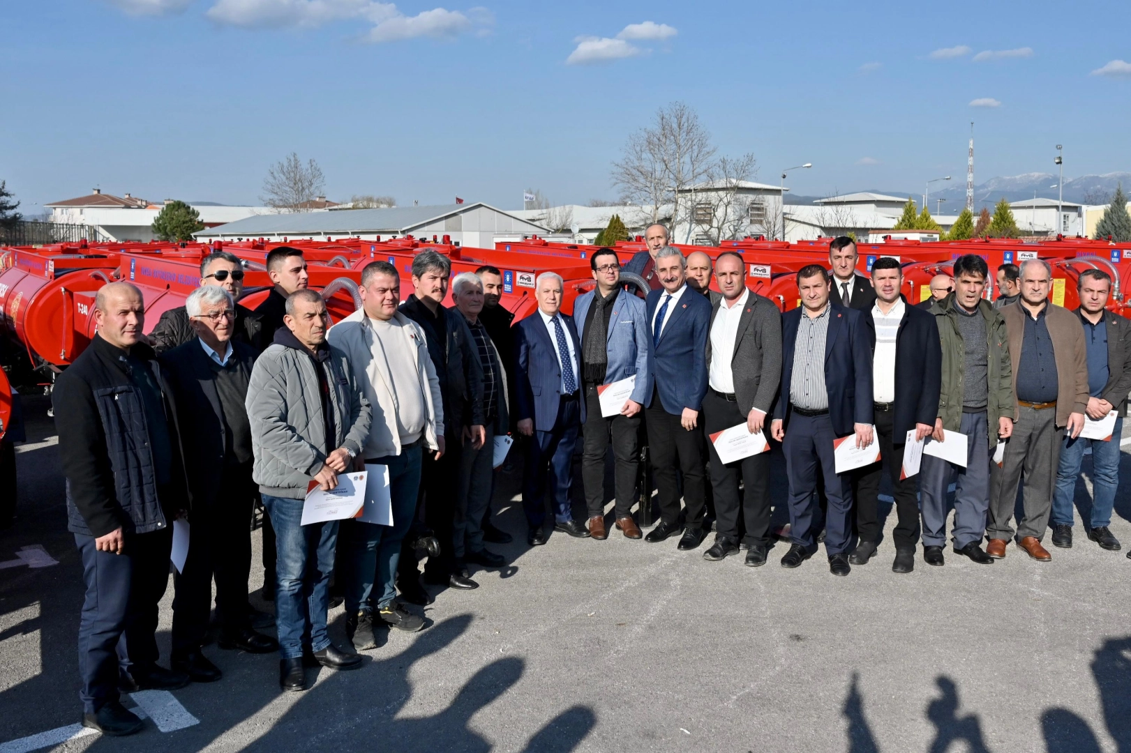 Bursa Büyükşehir Belediyesi, halkın can ve mal güvenliğini artırmak, doğal afetlere karşı daha hazırlıklı olmalarını sağlamak amacıyla ‘Gönüllü İtfaiyecilik’ kapsamında kırsal mahallelere 100 adet traktör arkası yangın tankeri dağıttı. Başkan Mustafa Bozbey, “Bizim yönetim anlayışımızda hiçbir mahallemiz yalnız değildir” dedi.
