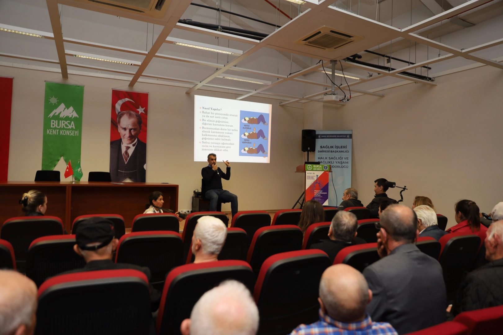 Sağlıklı insan ve sağlıklı kent mottosuyla çalışmalarını sürdüren Bursa Büyükşehir Belediyesi, Pulmoner Rehabilitasyon Haftası kapsamında bir dizi etkinlik düzenledi. İnsan Kaynakları ve Eğitim Dairesi Başkanlığı’na bağlı Personel Geliştirme Şube Müdürlüğü ve Sağlık İşleri Dairesi Başkanlığı’na bağlı Halk Sağlığı ve Sağlıklı Yaşam Şube Müdürlüğü ile Evde Bakım ve Ambulans Hizmetleri Şube Müdürlüğü tarafından hazırlanan program, Merinos Atatürk Kongre ve Kültür Merkezi’nde gerçekleştirildi. Kronik solunum hastalıklarıyla mücadele etmek amacıyla düzenlenen seminerde, solunumun önemi ve doğru solunum tipleri konularında detaylı bilgiler verildi. Fiziksel aktiviteyi artırmayı sağlayacak ve hastalığın getirebileceği kısıtlamalarla başa çıkmaya yardımcı olacak solunum egzersizleri de uygulamalı olarak gösterildi. Eğitim programında konuşan Halk Sağlığı ve Sağlıklı Yaşam Şube Müdürü Elif Derya Güngören, Plumoner Rehabilitasyon hakkında farkındalığın artırılmasını amaçlandıklarını söyledi. Seminerin, rehabilitasyona ihtiyaç duyan kronik hastalar, solunum hastalıklarıyla mücadele edenler, ileri yaşlardaki huzurevi sakinleri, kas hastaları ve özel gereksinimli vatandaşlara yönelik planlandığını belirten Güngören, Büyükşehir Belediyesi’nde görevli fizyoterapist eşliğinde vatandaşlara uygulamalı solunum egzersizleri gösterildiğini ifade etti.
