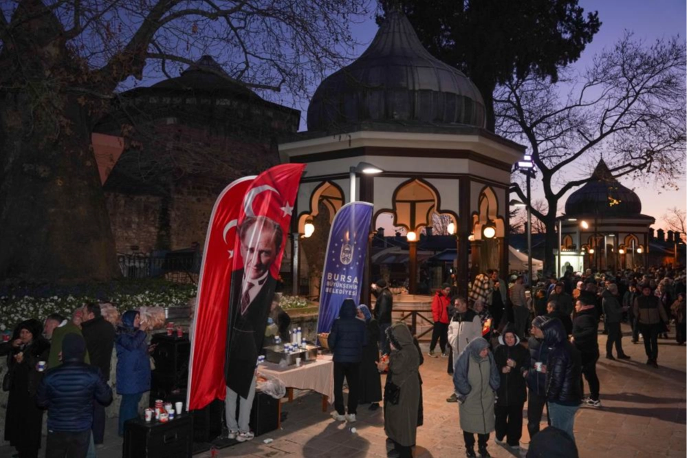 Bursa’da yılın ilk sabah namazında binlerce kişi, Bursa’daki tarihi camilere akın etti. İslam âleminin en yüksek mertebedeki 5’inci büyük mabedi kabul edilen 600 yıllık Bursa Ulucami, 2025’in ilk sabahında Bursalıların en çok ilgi gösterdiği cami oldu. Yoğunluk nedeniyle cami içinde yer bulamayan vatandaşların büyük bir kısmı ise soğuğa aldırış etmeden sabah namazını cami bahçesinde kıldı. Namaz sonrası şehitler ve İsrail’in zulmü altındaki Gazzeliler için dua edildi.