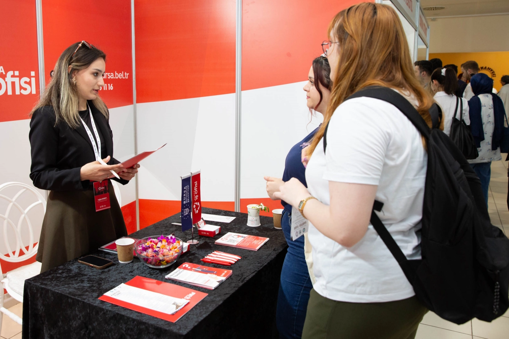 İstihdam destekleri, kariyer danışmanlığı... Bursa İş Ofisi kariyer danışmanları, fuar boyunca öğrencilerle birebir görüşmeler yaparak; iş başvuruları, özgeçmiş hazırlama teknikleri, mülakat becerileri, yerel ve ulusal iş fırsatlarına erişim yolları gibi konularda bilgiler sundu. Ayrıca Bursa Büyükşehir Belediyesi tarafından sağlanan istihdam destekleri, kariyer danışmanlık hizmetleri ve gençlere yönelik projeler anlatılarak, öğrencilerin kariyer hedeflerine ulaşmalarına rehberlik edildi.