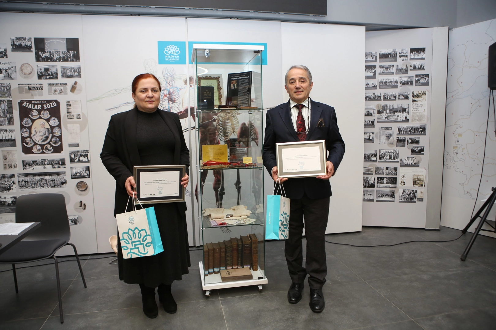 Konferansın sonunda, Doğan Nadi Gürelman’ın, koleksiyonunda yer alan ve bağışladığı, 1930’lu yıllarından kalan bir Türk Bayrağı, o dönemde kullanılan hasta mendilleri, hasta önlüğü ve ilaç kutusu, I.Dünya Savaşı’nda ve Kurtuluş Savaşı’nda askerler için işlenen dua keseleri Nilüfer Belediyesi Dr. Ceyhun İrgil Sağlık Müzesi’ndeki yerini aldı.
