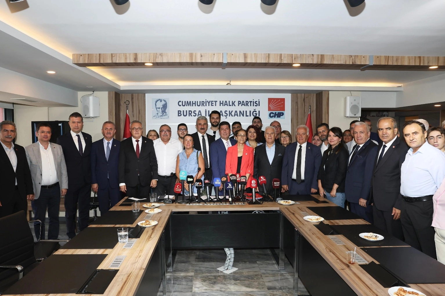CHP Bursa İl Başkanlığı’nda düzenlenen basın toplantısında saha çalışmasına dair detaylar kamuoyuyla paylaşılırken toplantıya; CHP Bursa İl Başkanı Nihat Yeşiltaş’ın yanı sıra Bilecik Milletvekili Yaşar Tüzün, Aydın Milletvekili Süleyman Bülbül, Kocaeli Milletvekili Nail Çiler, Uşak Milletvekili Ali Karaboa, Burdur Milletvekili İzzet Akbulut, Yalova Milletvekili Tahsin Becan, Yüksek Disiplin Kurulu Üyesi Akça Akpek Şenay ile birlikte Bursa Büyükşehir Belediye Başkanı Mustafa Bozbey, Osmangazi Belediye Başkanı Erkan Aydın, Nilüfer Belediye Başkanı Şadi Özdemir, Gemlik Belediye Başkanı Şükrü Deviren, Mudanya Belediye Başkanı Deniz Dalgıç ve örgüt yöneticileri katıldı.