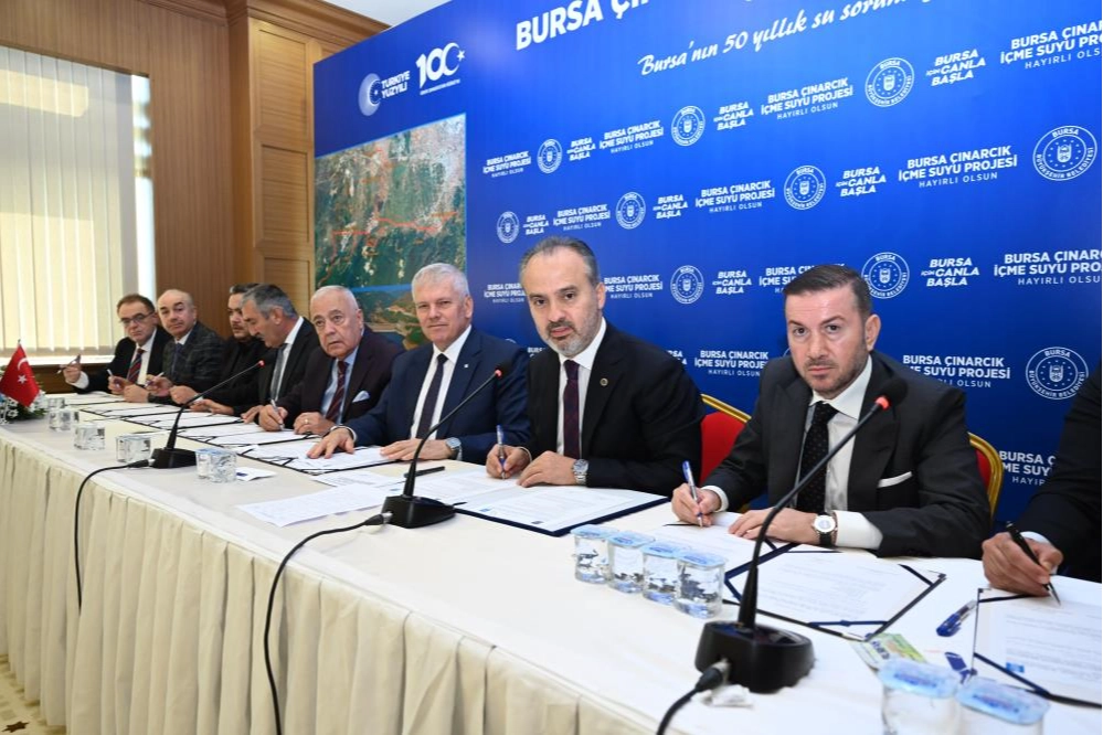Bursa’ya 2060 yılına kadar susuzluk yaşatmayacak olan ‘Bursa Çınarcık İçme Suyu Projesi’nin herhangi bir aksamaya uğramadan, kısa zamanda tamamlanması için ihaleyi kazanan 9 ayrı firma ile sözleşme imzalandı.