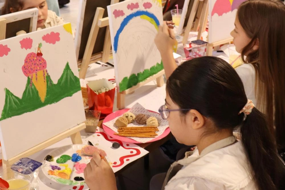 Bir sanat merkezinde, uzman sanat eğitmenleri eşliğinde düzenlenen etkinlikte çocuklar, tuval boyama, obje boyama ve ahşap boyama atölyelerine katılarak farklı teknikler ve materyallerle çalışma fırsatı yakaladı. Sanatı deneyimleyerek öğrenmenin keyfini yaşayan çocuklar, hayal dünyalarını özgürce ifade etti.
