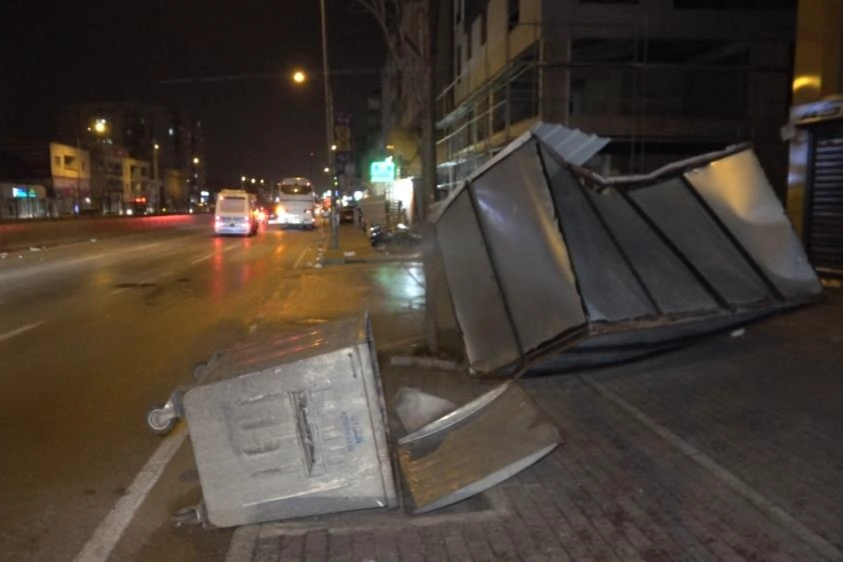 Çok sayıda çatı uçması olayı gerçekleşirken, tenteler ve sert cisimler de havada uçtu
