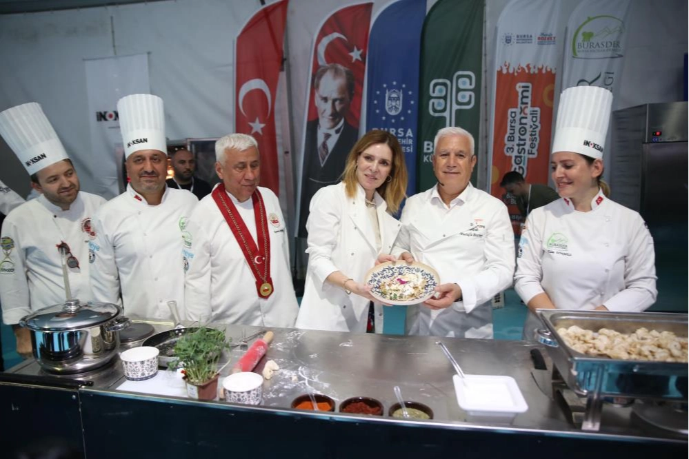 Bursa'nın sahip olduğu zengin mutfak kültürünü turizme kazandırmak ve dünyaya açmak amacıyla Büyükşehir Belediyesi tarafından ‘Damağımdaki Bursa' temasıyla düzenlenen 3. Gastronomi Festivali, birbirinden renkli rekor denemeleri ve yarışmalara da sahne oluyor. Bursa Aşçılar Derneği'nin katkılarıyla Merinos Parkı'nda Bursa'nın coğrafi işaretli tatlısı olan ‘Süt Helvası' ile rekor denemesi gerçekleştirildi. Türkiye'nin farklı kentlerinden Bursa'ya gelen 150 civarında şef, devasa kazanın başına geçerek tek seferde 5 ton süt helvasını yapmak için çalıştı. Kazanın altındaki ateşi yakan Bursa Büyükşehir Belediye Başkanı Mustafa Bozbey, eşi Seden Bozbey ile birlikte kazanın başına geçerek dev tahta kepçelerle süt helvasını karıştırdı. İlk tadımı eşi Seden Bozbey ile birlikte yapan Başkan Mustafa Bozbey, daha sonra alanı dolduran misafirlere ikramda bulundu. Rekor denemesinde emeği geçen tüm şefleri tebrik eden Başkan Bozbey, "Şeflerimiz, bu sene 5 son süt helvası yaptı. Önümüzdeki senelerde daha fazlasını yapacaklardır. Bursa'nın coğrafi işaretli tatlısı olan süt helvası, mutlaka Guinness Rekorlar Kitabı'nda yer almalıdır. Dev kazanda yapılan süt helvasını Merinos Parkı'nda ve Kent Meydanı'nda 20 bin kişiye ikram edeceğiz” dedi. Başkan Bozbey mutfakta Başkan Mustafa Bozbey, daha sonra yerel şef aşçıların eşliğinde Bursa yemeği yapmak üzere tezgahın başına geçti. Bursa Aşçılar Derneği'nin katkılarıyla düzenlenen programda, Başkan Bozbey, Vali Yardımcısı Rıza Gençoğlu, CHP İl Başkanı Nihat Yeşiltaş ve Büyükşehir Belediyesi bürokratları Bursa'nın coğrafi işaretli lezzetlerini yapmak için yeteneklerini sergiledi. Eşi Seden Bozbey ile birlikte mutfaktaki hünerlerini de gösteren Başkan Bozbey, izleyenlerden büyük alkış aldı. Yapılan yemekler, daha sonra misafirlere ikram edildi.