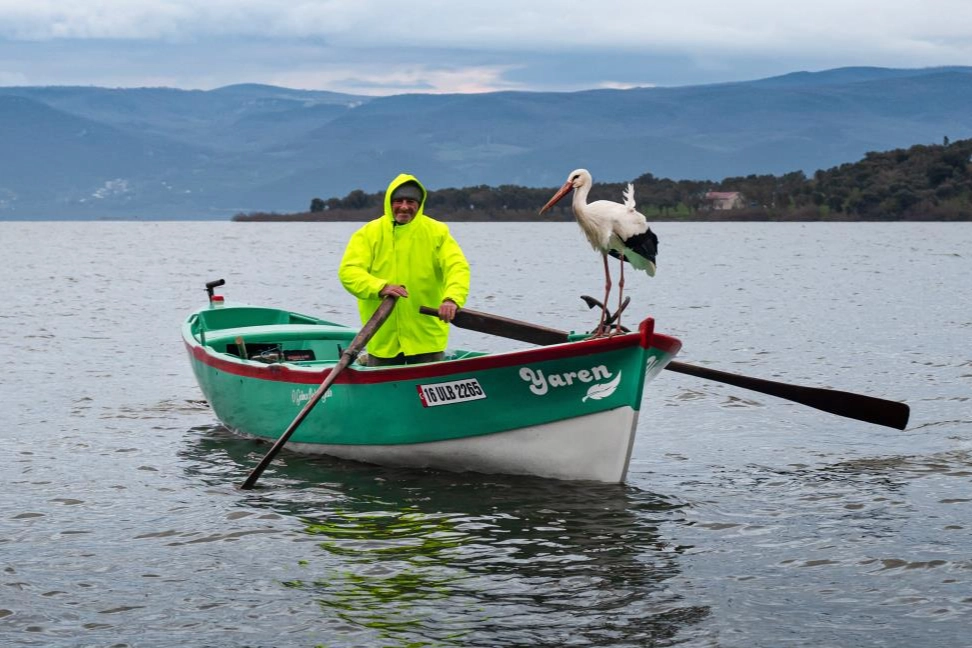 Bursa'da 15 yıldır baharın gelişini simgeleyen buluşma bu yıl da gerçekleşmesi herkesin yüzünü güldürdü. Yaren leylek, uzun göç yolculuğunun ardından geçtiğimiz gün 24 Şubat tarihinde Bursa'nın Eskikaraağaç Leylek Köyü'ndeki yuvasına döndü. Ancak Adem amcanın kayığına konmayınca, Yaren değil Nazlı sanıldı. Adem Amca, günlerdir "Acaba gelir mi?" diye gökyüzünü izlerken, kayığına konan Yaren ile birlikte ilk pozunu verdi.