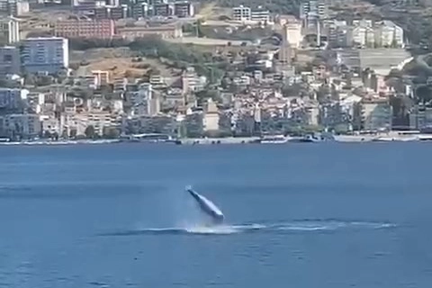 Yürüyüş bandına yakın mesafelere kadar gelen 2 yunus balığı suda uzun süre oyunlar oynadı. Zaman zaman ses çıkartan ve birbirleri ile oynayan yunus balıkları bir süre sonra körfezin serin sularında gözden kayboldular