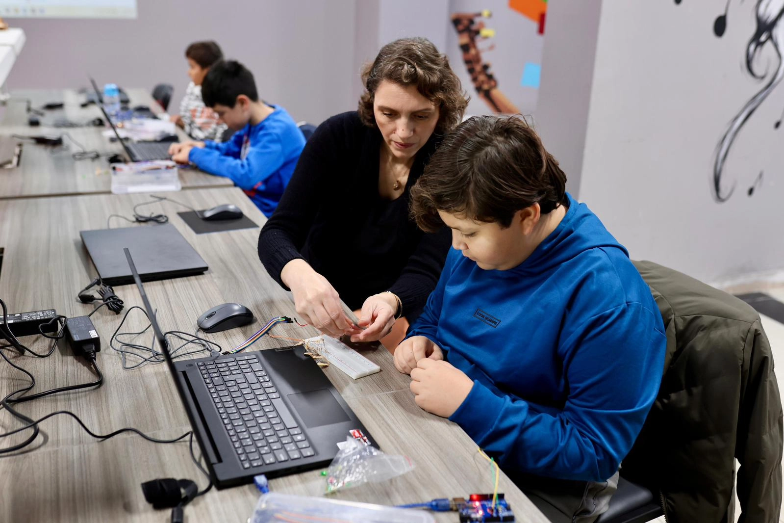 Atölyede dersler uygulamalı olarak yürütülüyor. Çocuklar, sensörler, motorlar, devre elemanları ve kodlama platformlarıyla birebir çalışarak kendi projelerini oluşturuyor. Böylece yalnızca teorik bilgi edinmekle kalmayıp, gerçek hayatta karşılığı olan ürünler geliştirme fırsatı buluyorlar. Eğitimlerde takım çalışması, yaratıcılık ve problem çözme gibi beceriler de ön plana çıkarılıyor.