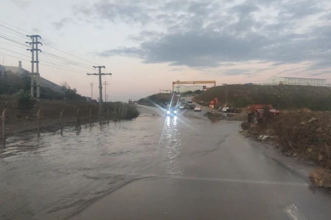 Bursa'nın Gemlik ilçesinde sel suları karayolunu kapsayınca ulaşım aksadı.